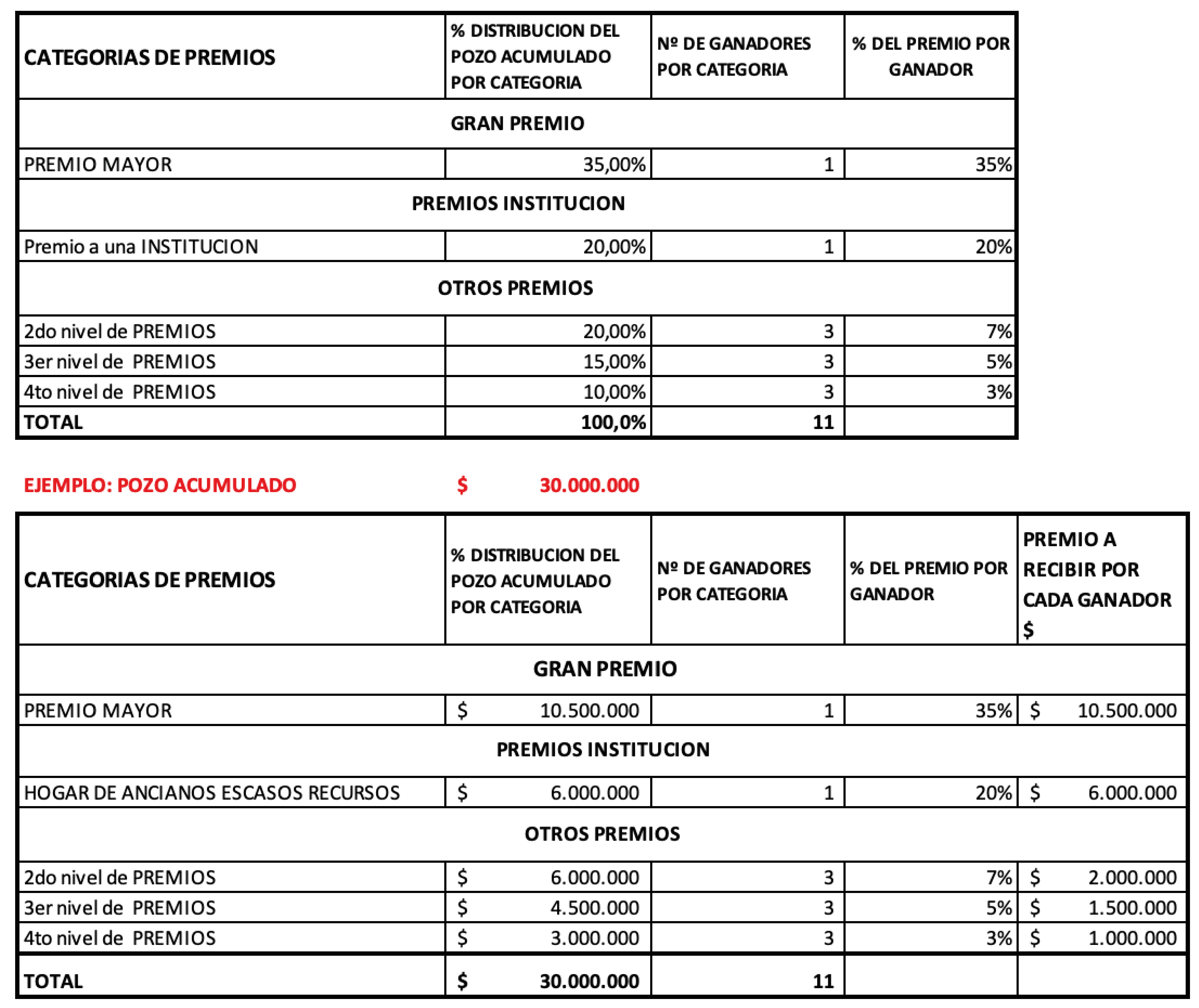 - 10% del pozo acumulado será repartido entre 3 clientes ganadores del sorteo
